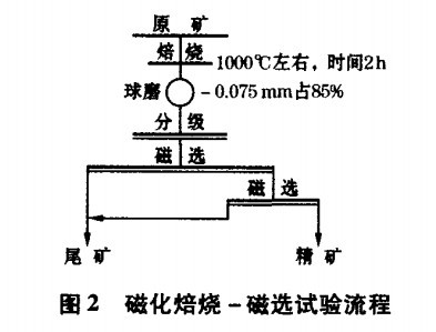 由于采用該工藝需要購(gòu)買(mǎi)價(jià)格較高的磁選機(jī)設(shè)備,而且經(jīng)過(guò)磁選的鐵精礦品位不是很高,其褐鐵礦售價(jià)也不是高,產(chǎn)品只能出售給小型鋼鐵企業(yè)。為了提高產(chǎn)品質(zhì)量,在經(jīng)過(guò)強(qiáng)磁選的基礎(chǔ)上還進(jìn)行了磁化焙燒試驗(yàn)。